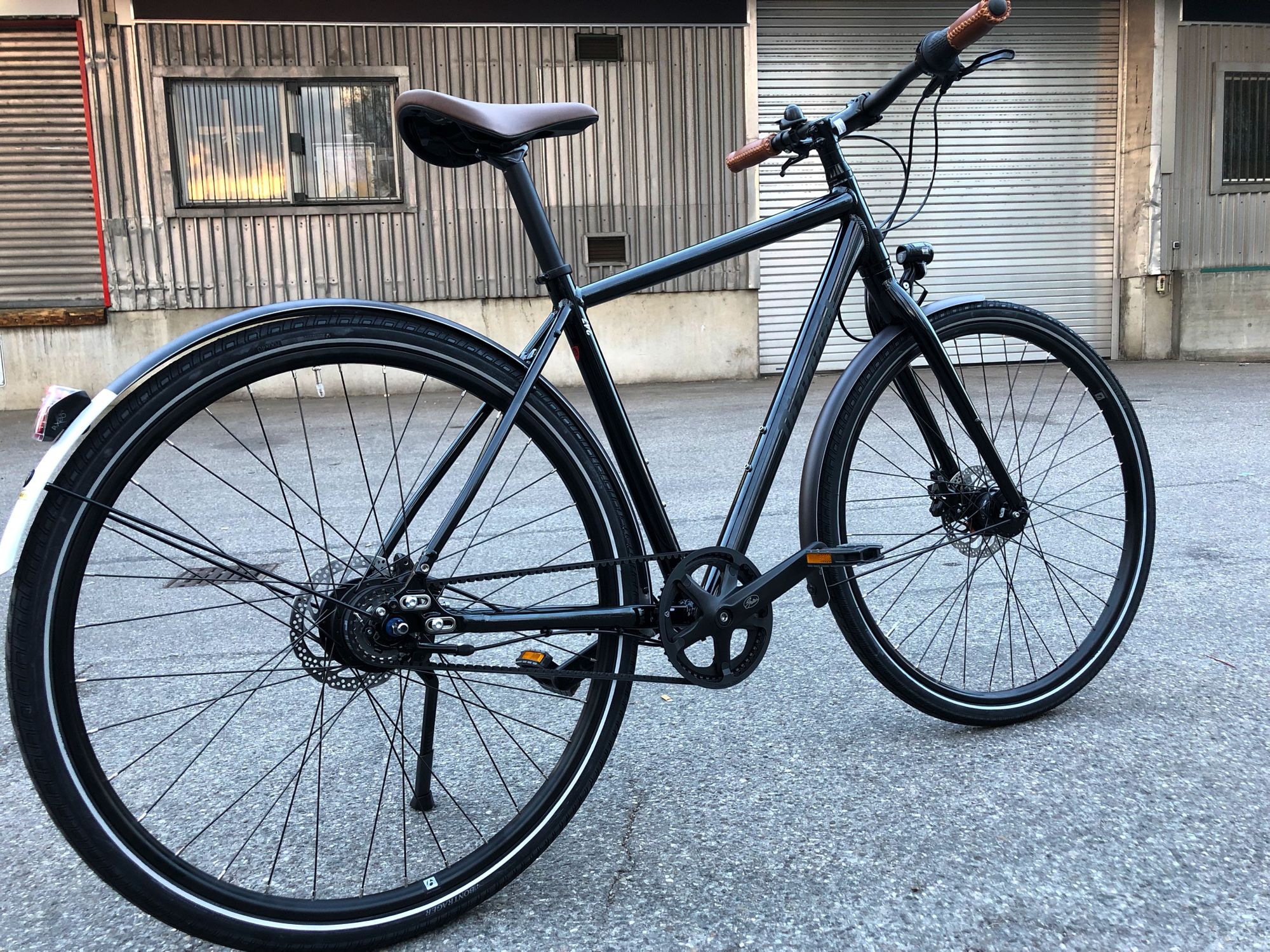 So ein Rennrad das kein Rennrad ist de jour (Cross-/Gravel-/Whateverbike), mit Schutzblechen und Licht, das ist doch eigentlich nicht dumm… aber dann auch wieder mit Kettenschaltung und das will man doch eigentlich nicht, wenn man fahren statt pflegen will. Bis ich dann mal so ein Teil mit Nabe und Scheibenbremsen gesehen habe – keine Ahnung, was es war, es war orange. Sowas wollte ich auch, und begann die Augen offenzuhalten. Dabei kristallisierten sich dann die Punkte heraus: