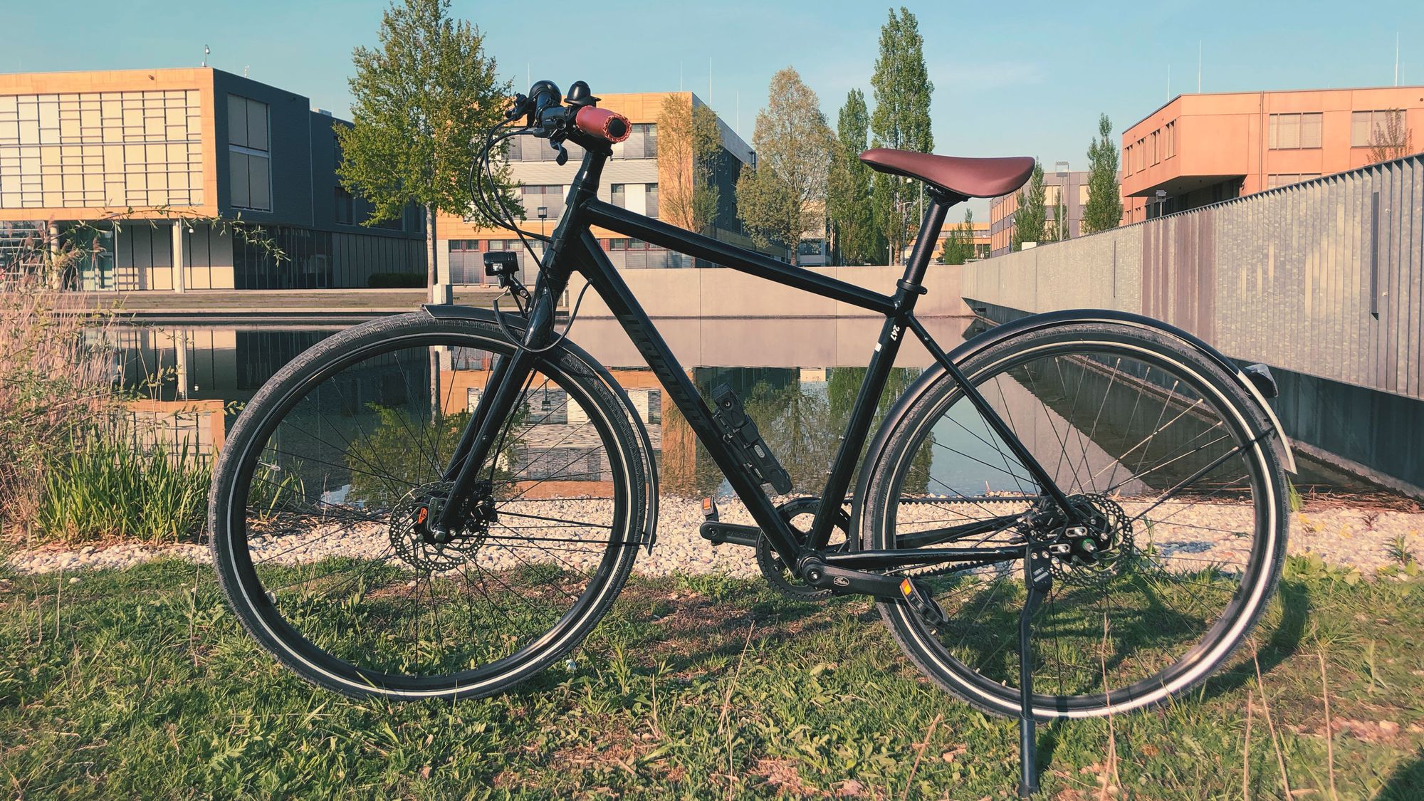 Ein Cube Hyde Pro sieht zum Beispiel um einiges reduzierter und auch ein bisschen "böser" aus, aber hat keine Schutzbleche und kein festes Licht. Und mit Batterie will ich eigentlich nicht mehr rumhantieren. Die Canon Commuter sind teurer, die Alternativen haben Federgabeln oder seltsam hohe Preise oder …irgendwas ist immer. Zudem kommt es "aus der Heimat" – auch wenn Diamant zu Trek gehört zählt es doch.